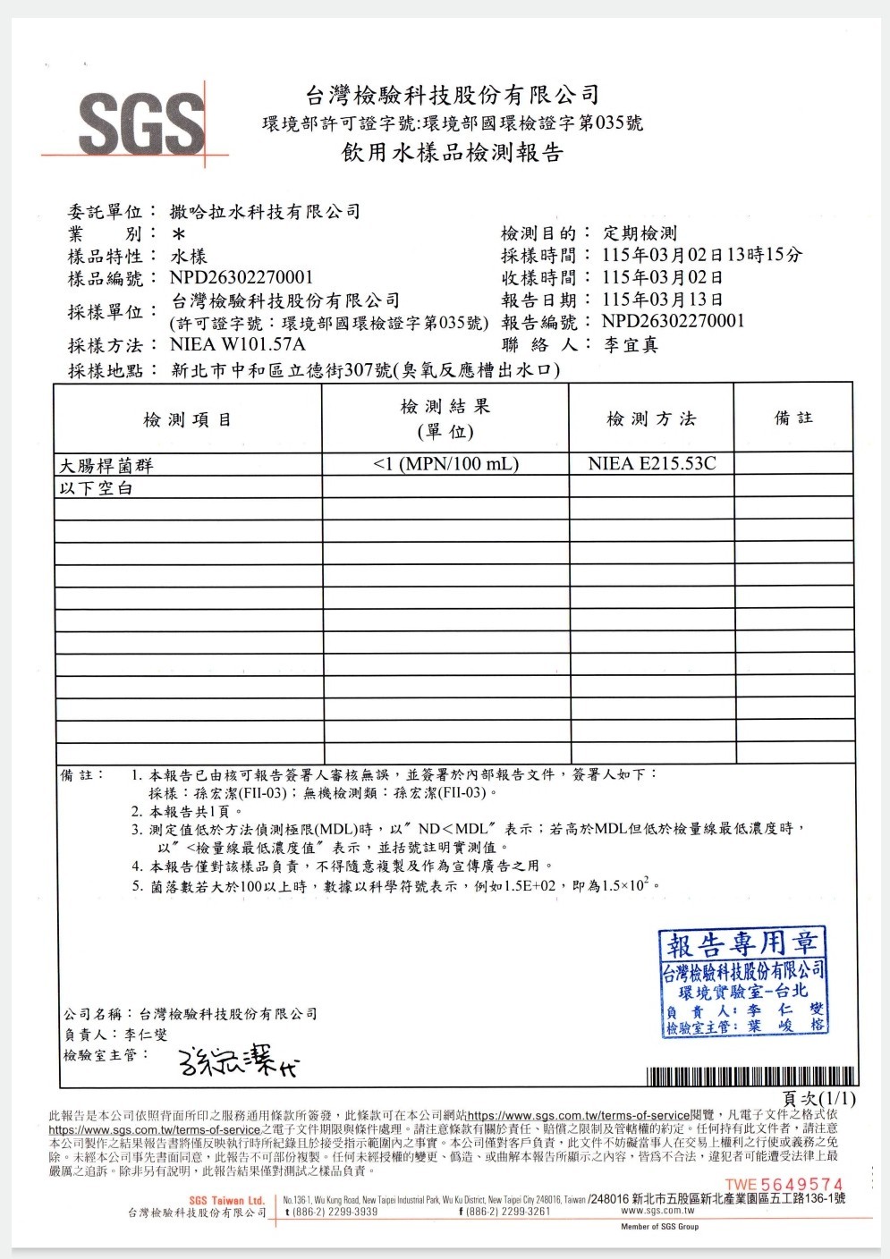 SGS檢驗報告(一)