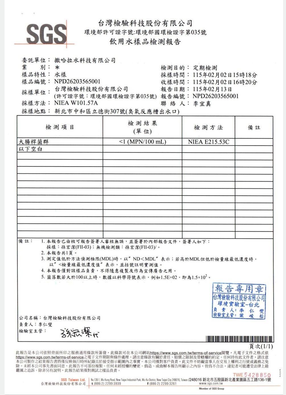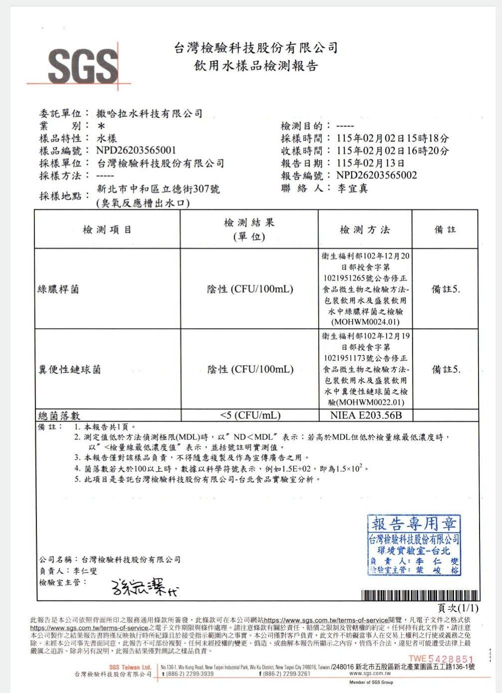 SGS檢驗報告(一)